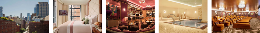 Parisian glamour in lower Manhattan. Expect velvet, gilded accents, and artful interiors that feel straight out of the 8th arrondissement. The hotel is filled with intimate spaces—stylish lounges, a speakeasy bar evoking 1920s Paris, and an Art Deco rooftop. Perfect for a romantic city escape.
